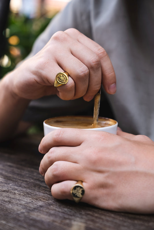 Solid Gold Family Crest Signet Ring – Custom Engraved Coat of Arms Jewelry Gift for Men, Father or Son