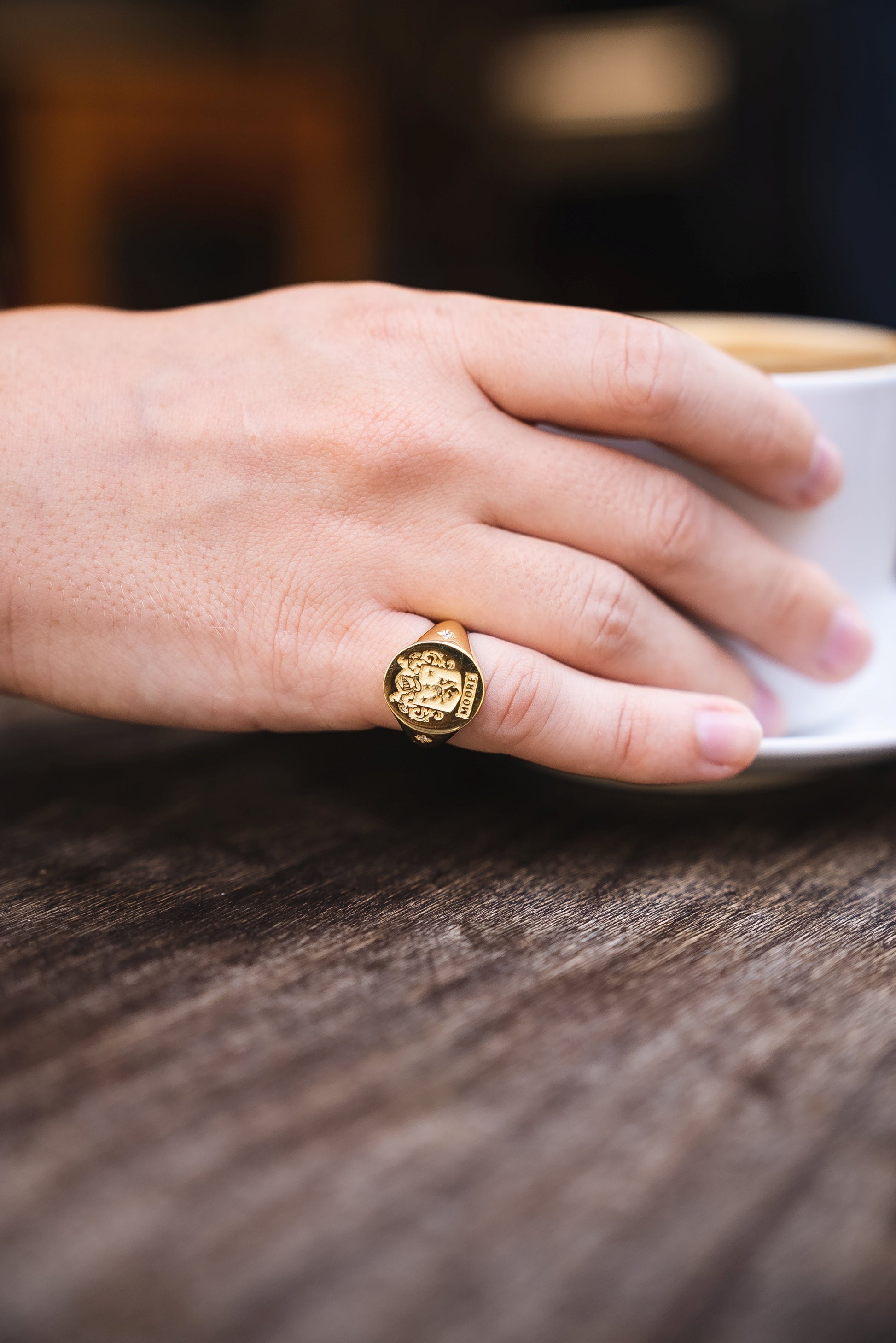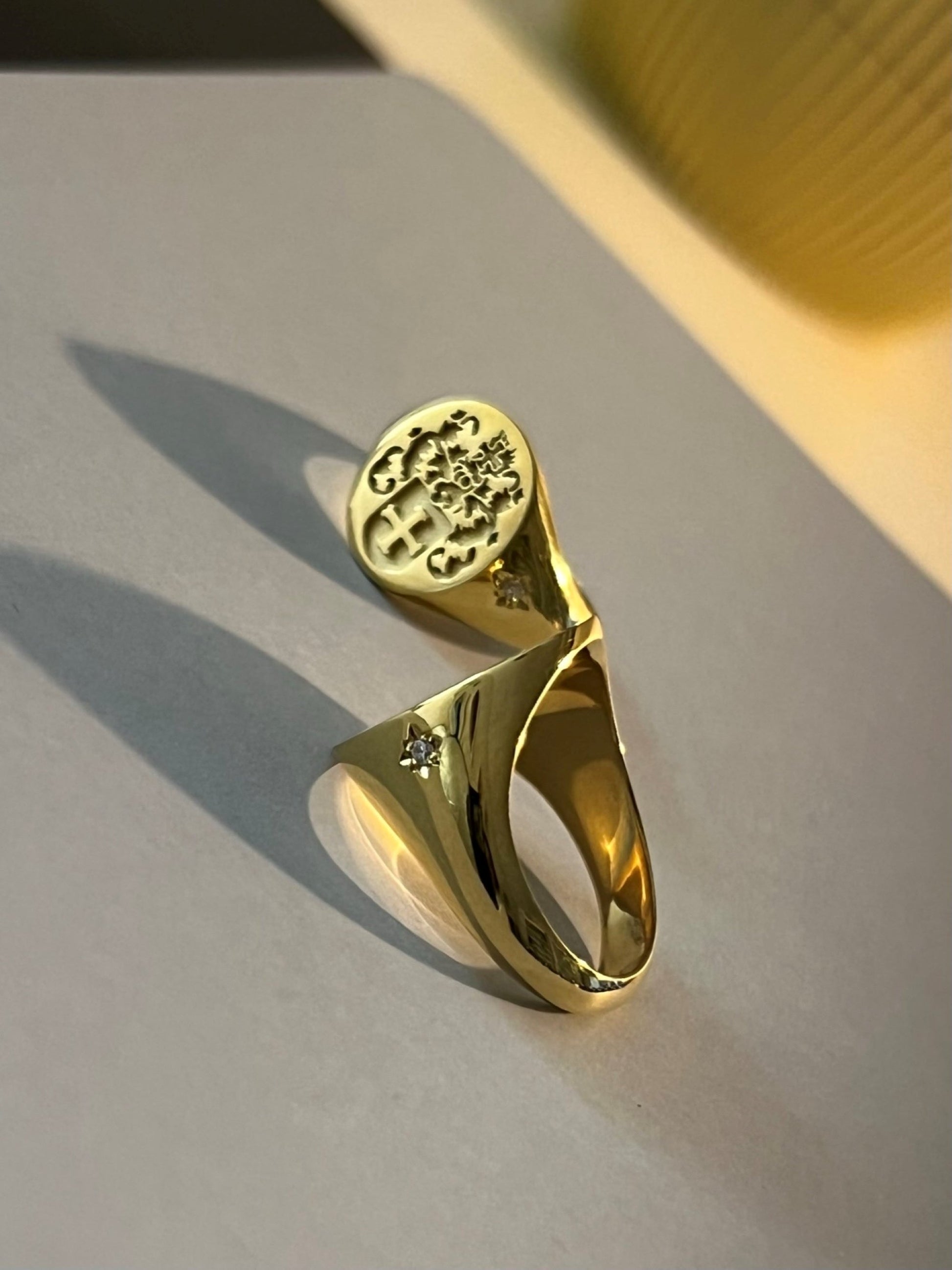 diamond gold family crest signet ring delicately engraved with your family crest or any other initials or image you want ♡