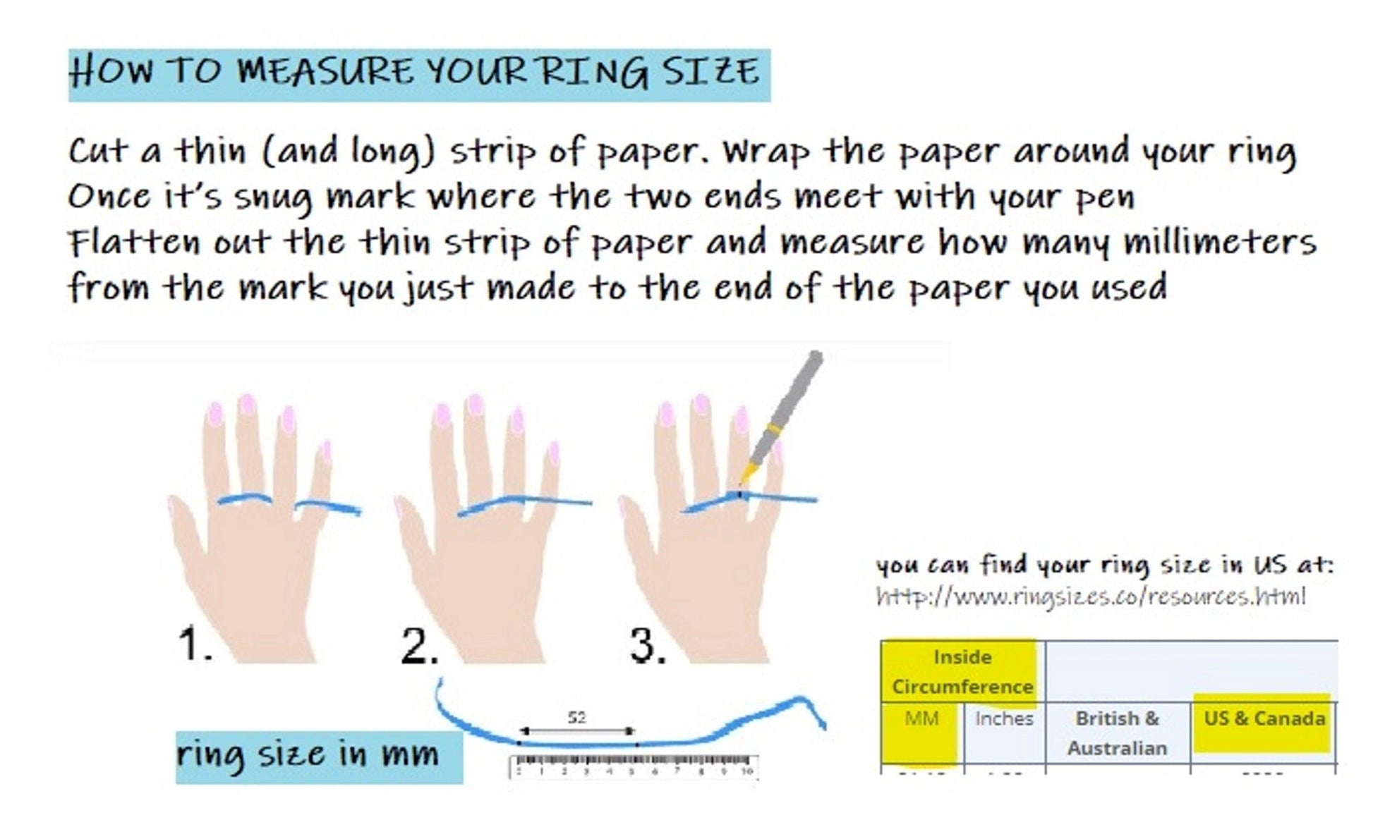 ♡ to be able to make a ring which fits perfectly we kindly ask you to double check your finger size as shown in the picture in our gallery before placing your order