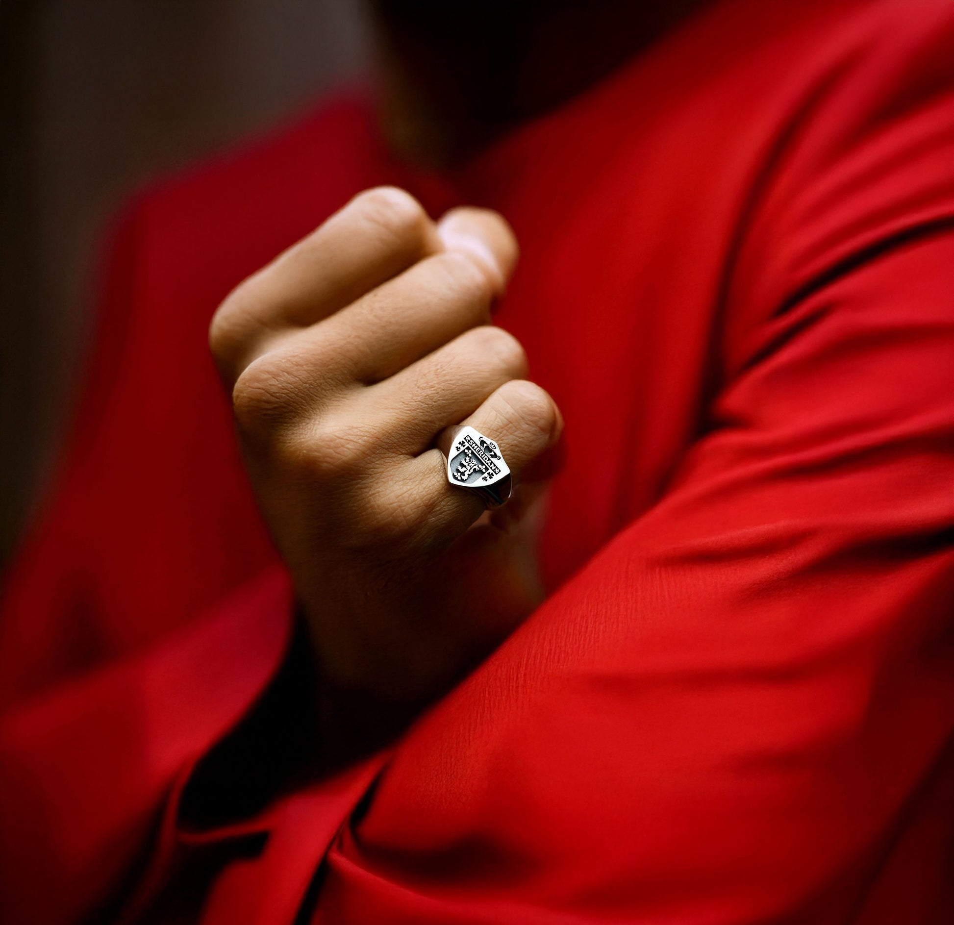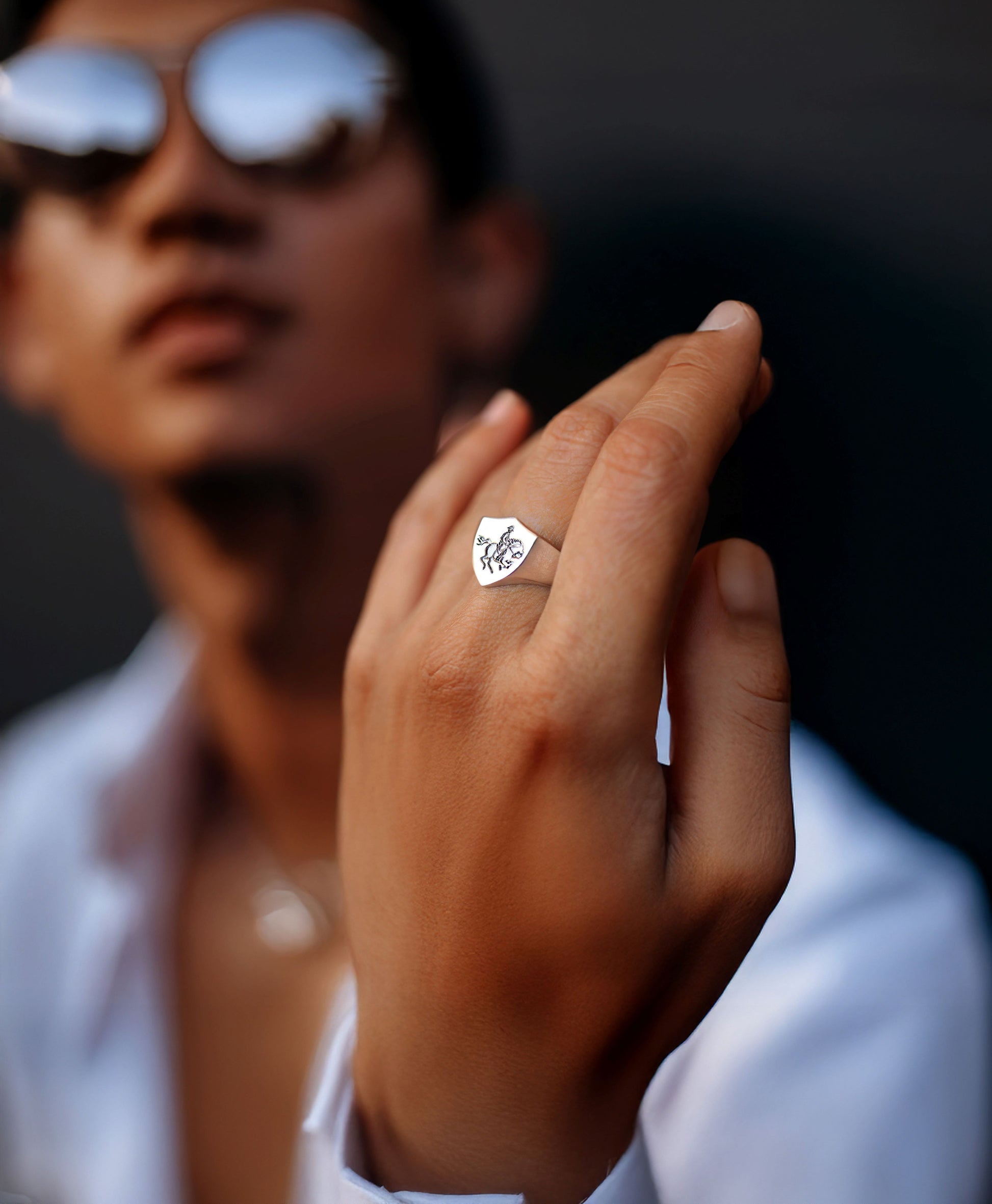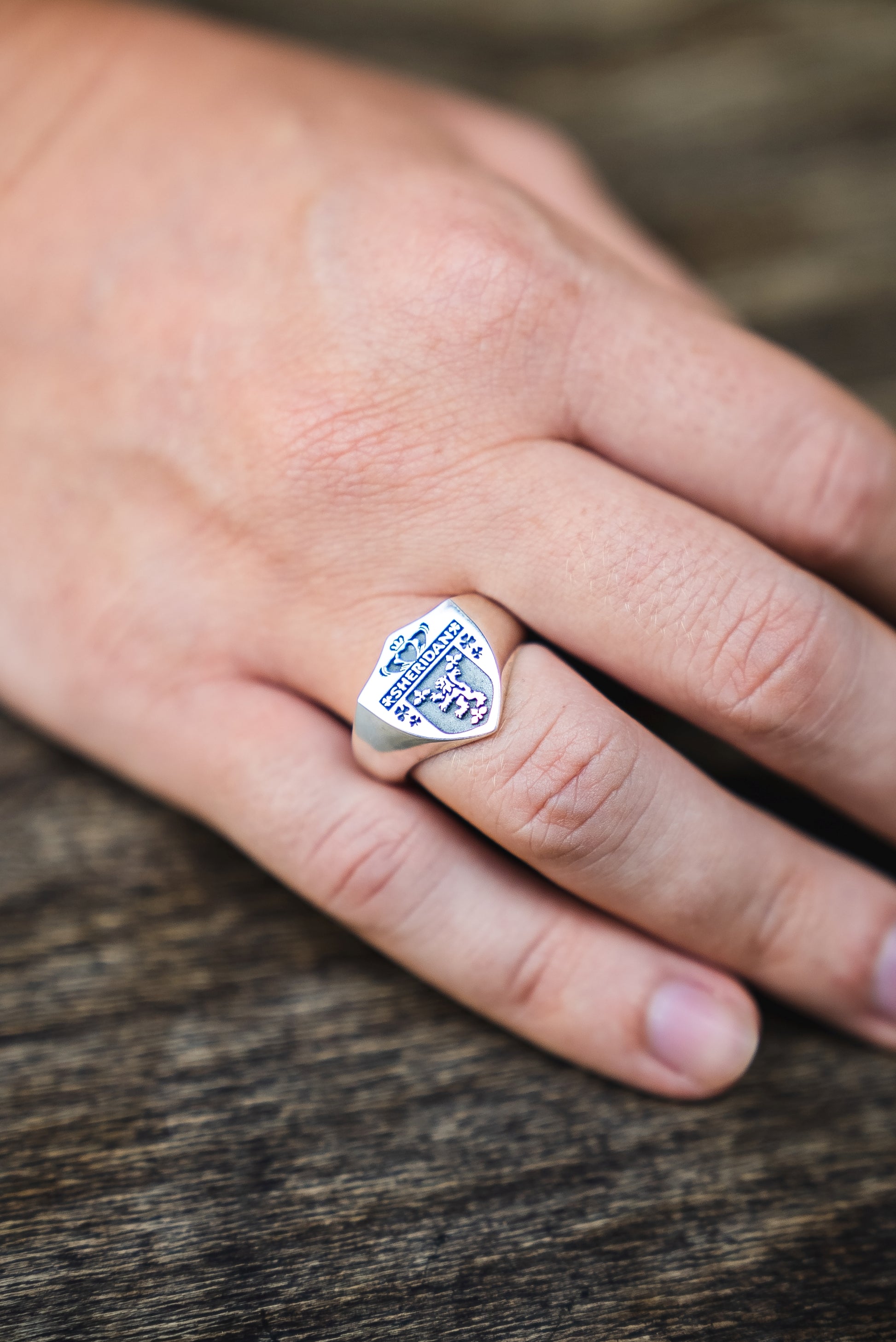 Custom Shield Family Crest Signet Ring – Engraved Coat of Arms Jewelry in Sterling Silver or Gold Plated