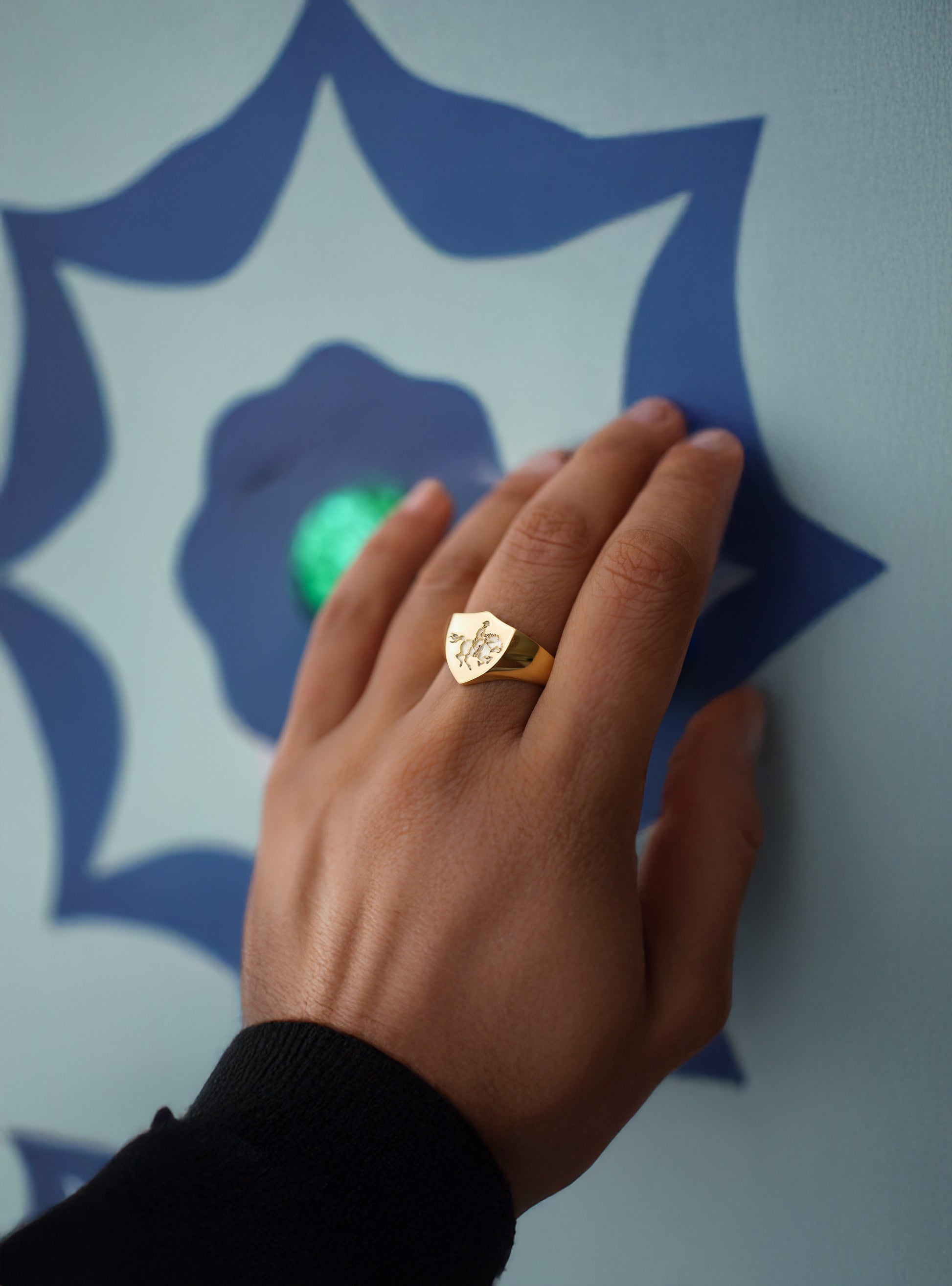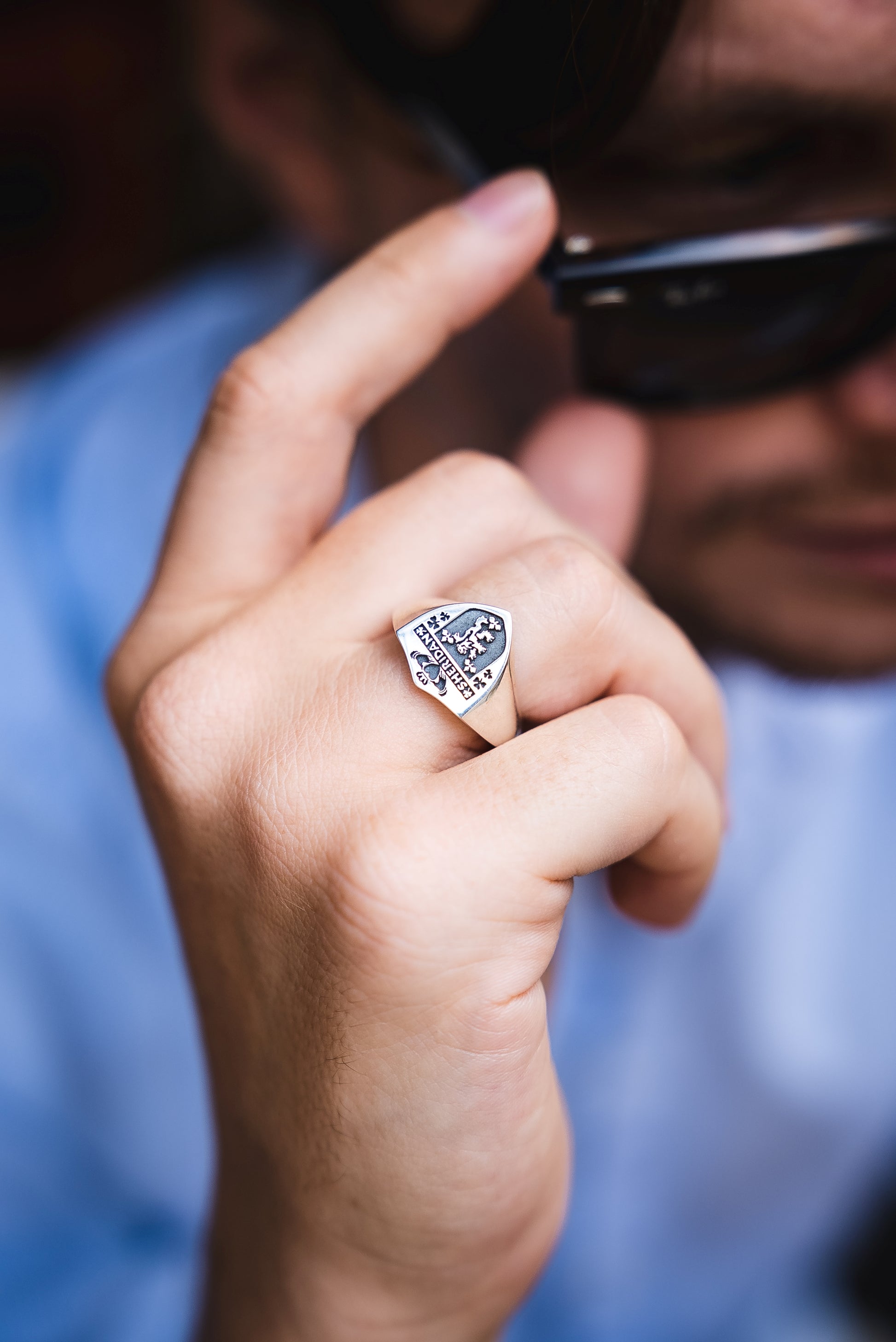 celebrate your family heritage with this custom engraved shield signet ring, crafted with your unique family crest, coat of arms, initials, or personal symbol. delicately handcrafted with deep detail, this unisex signet ring makes a powerful heirloom piece and a meaningful gift for men, fathers, or sons. ♡
