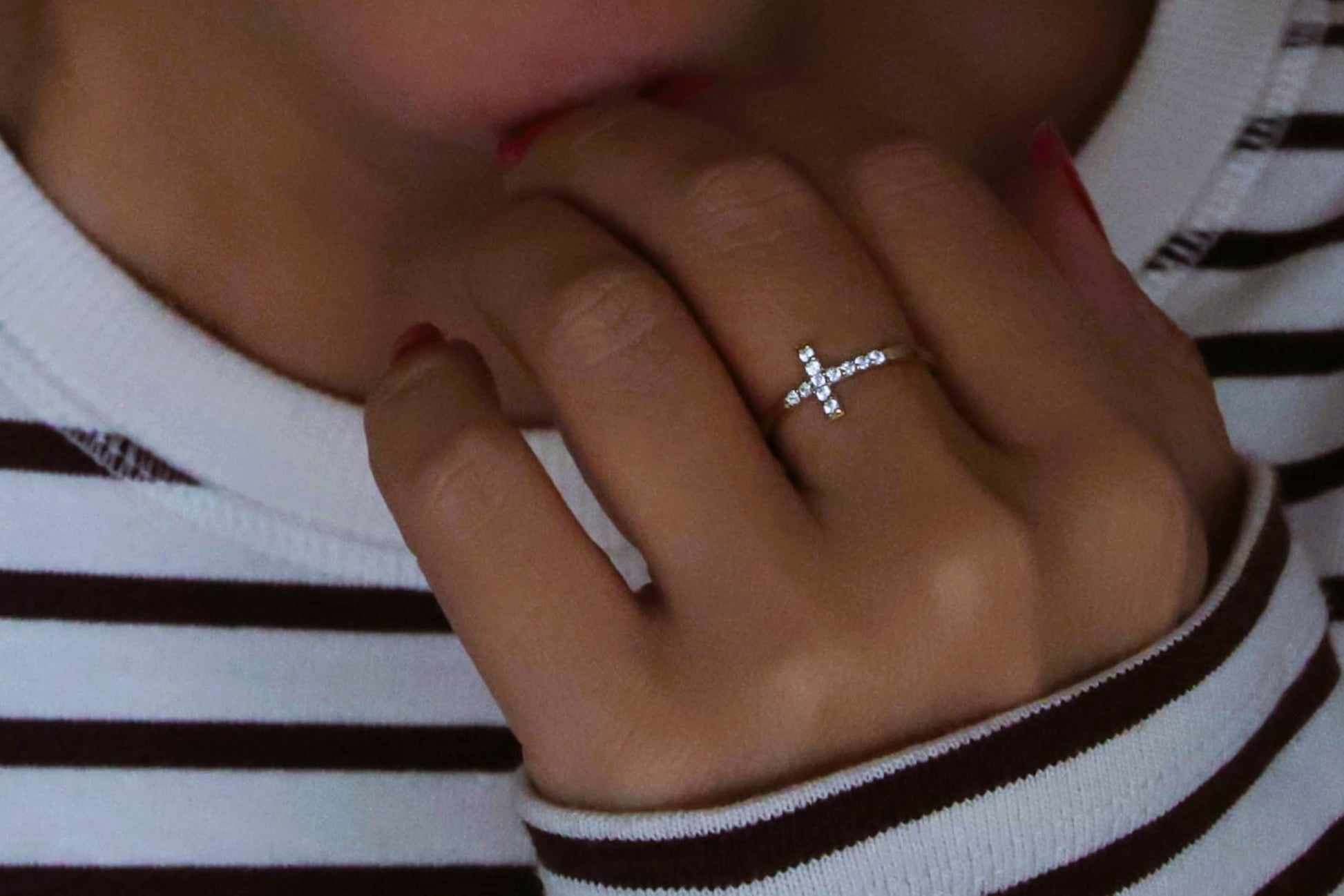 delicate, meaningful and refined — this gold diamond cross ring captures the beauty of faith and modern minimalism.