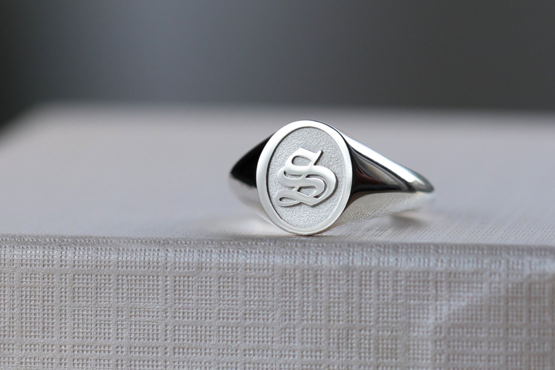personalized initial signet ring – custom letter ring in solid gold or sterling silver, dainty monogram jewelry gift for men and women