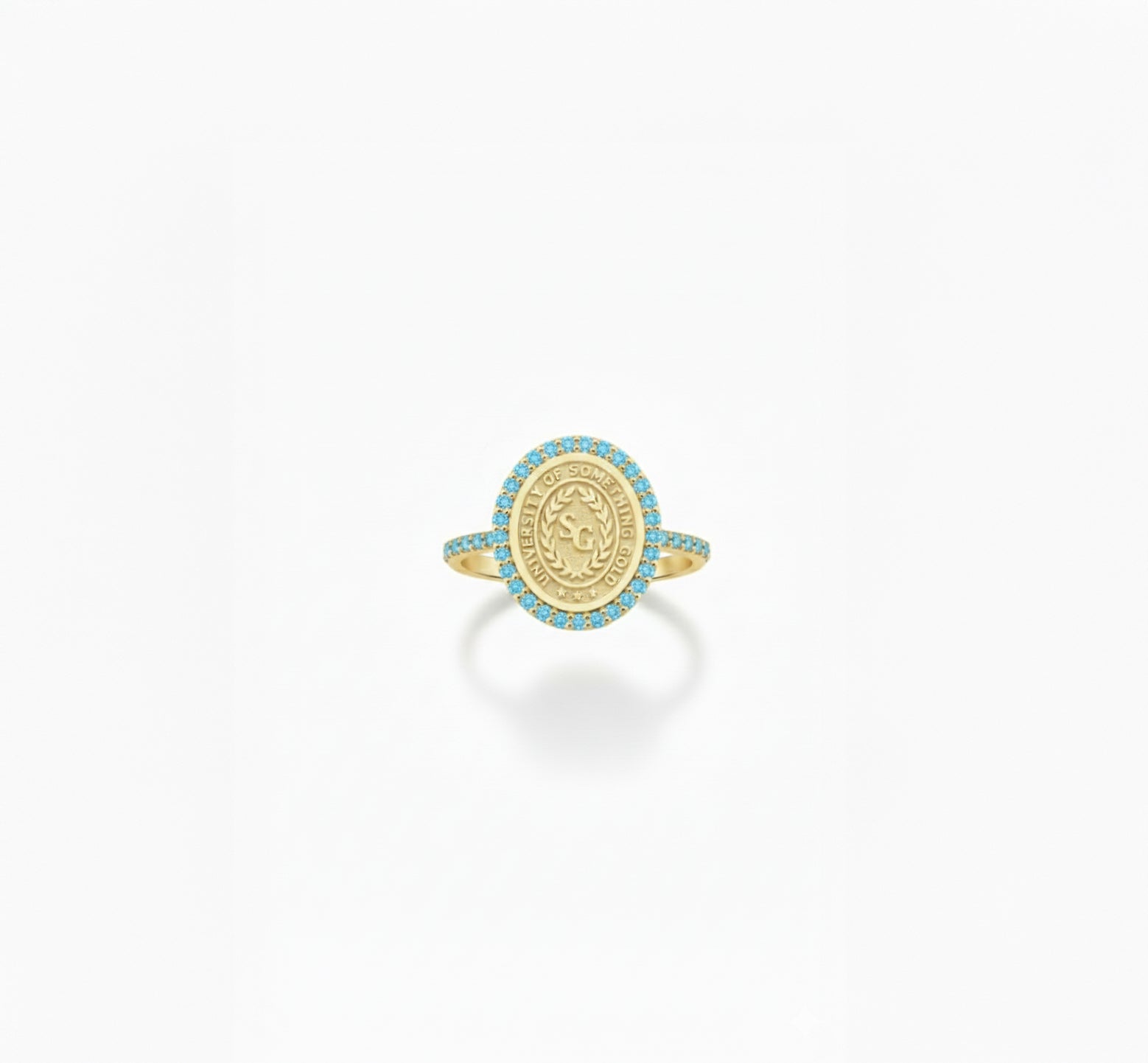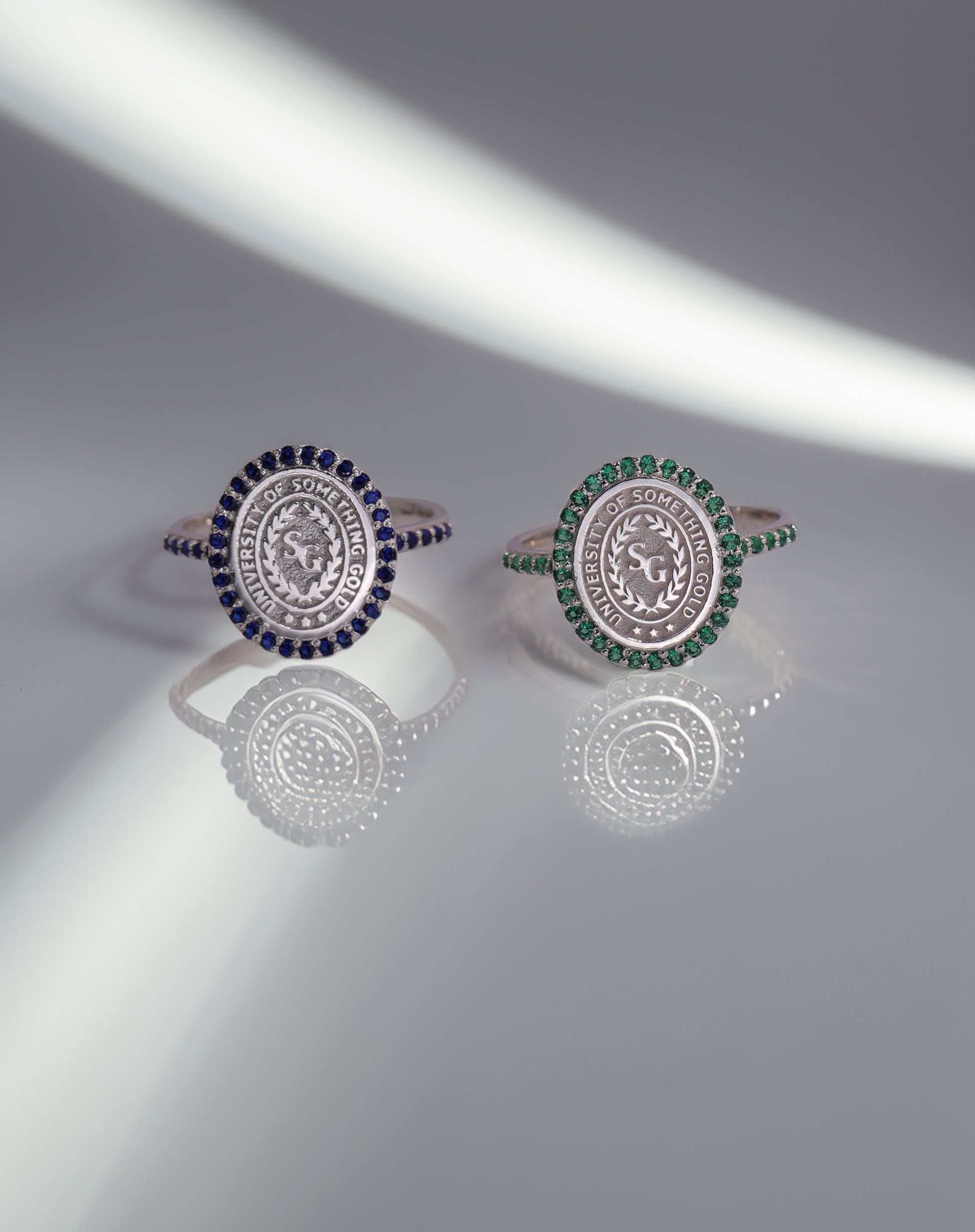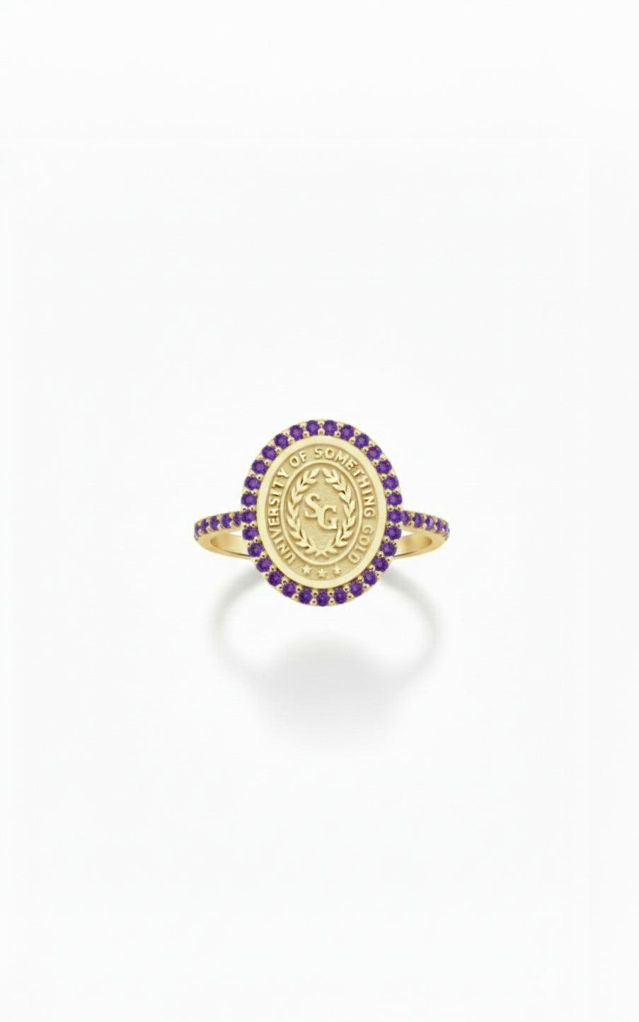 every ring is crafted specifically for you. the school logo is deeply engraved for longevity, and the halo stones are hand-set for maximum sparkle.