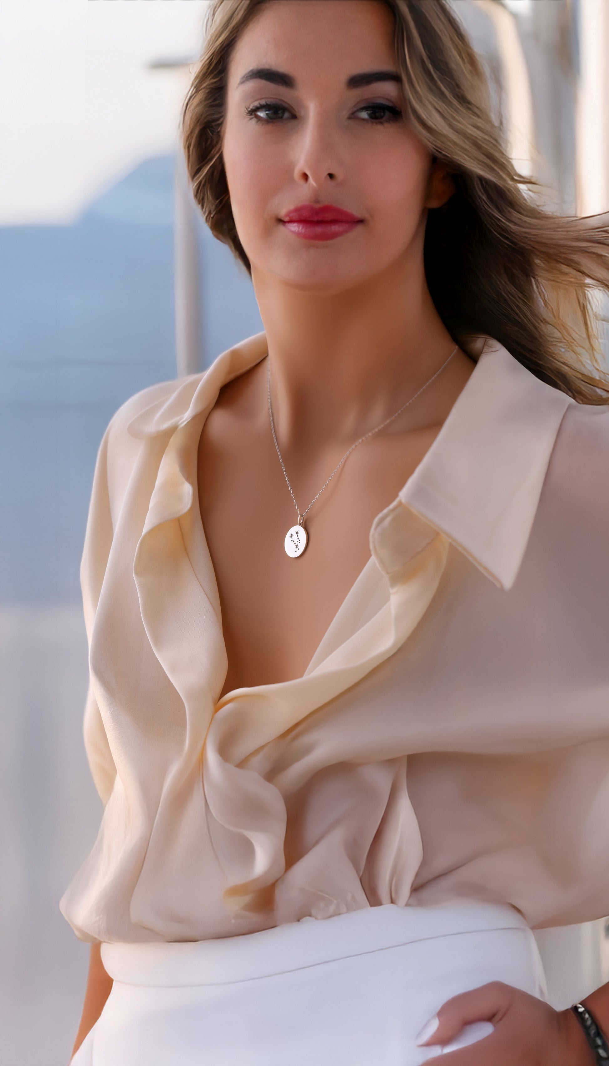 meet your new cosmic connection ✨ our zodiac constellation necklace. wear your story in the stars. this beautiful, dainty oval pendant (11x13mm) is deeply engraved with your unique zodiac constellation. it is a subtle, sophisticated way to carry your star sign with you and add a touch of celestial magic to your everyday fabulousness.